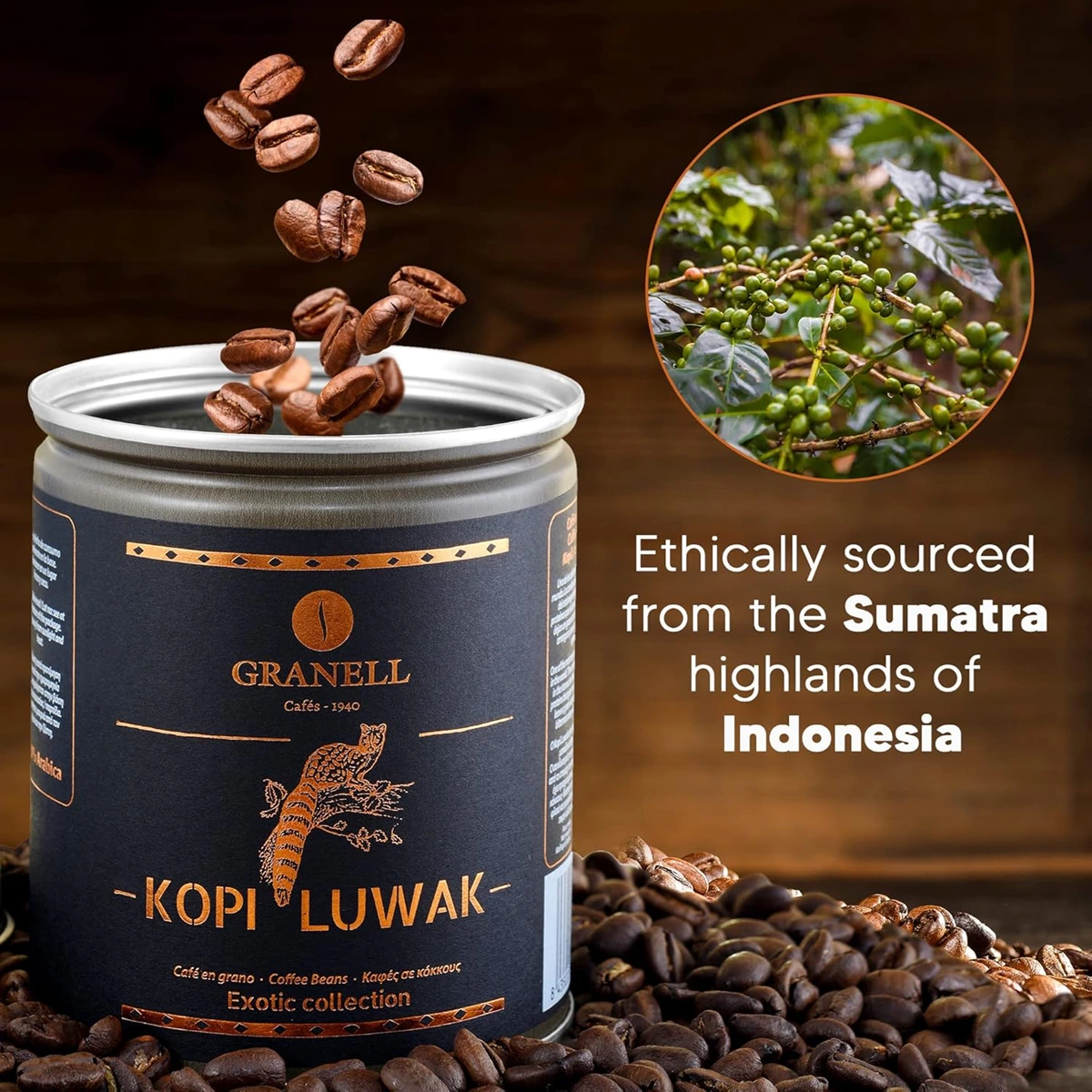 Kopi Luwak – The World’s Most Expensive Coffee (from Indonesia), *Raw WHOLE BEAN, Sustainably sourced, 100g, by Granell Cafés
