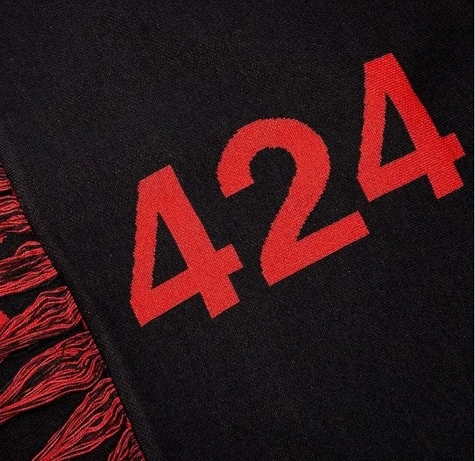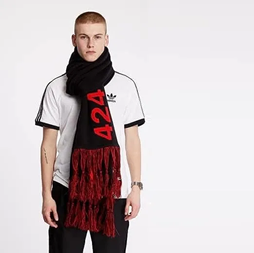 “Guillermo Andrade, the creative force behind L.A. streetwear brand 424, reworks a go-to cold-weather staple. This knit scarf complements your look with a sophisticated oversize shape. For a signature pop of red, 424 honors the adidas archive with bold 3-Stripes. Crafted from a blend of 85% acrylic and 15% wool, this scarf combines luxury, style, and high quality.”