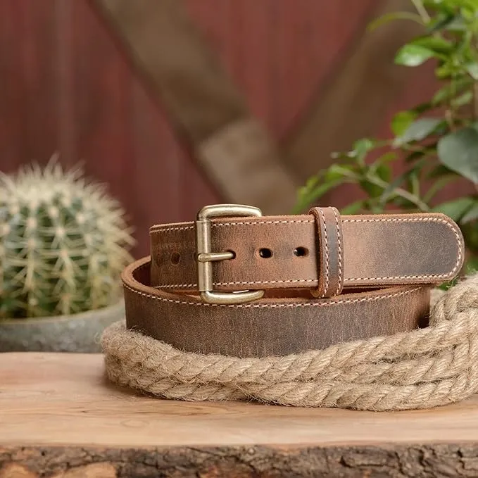 BULLHIDE - AUTHENTIC and HIGH QUALITY Leather Belt, 1.50" Wide, Brown, 34"inch