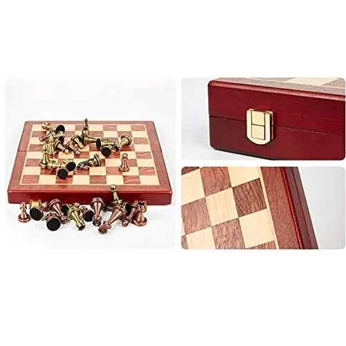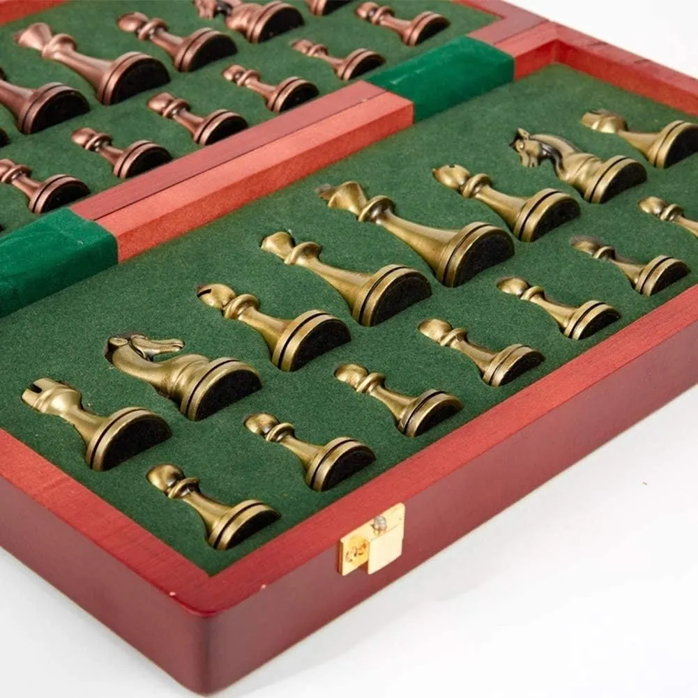 Professional Chess Set – Luxury BOARD GAME, Wooden and Metal Bronze, 28.5×29.2cm