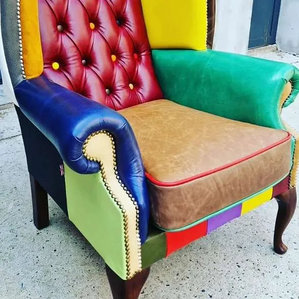 Casa Padrino – Luxury Chesterfield wing chair multiColoured, Real Leather, Be stylish, Be different!