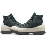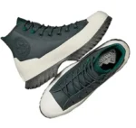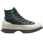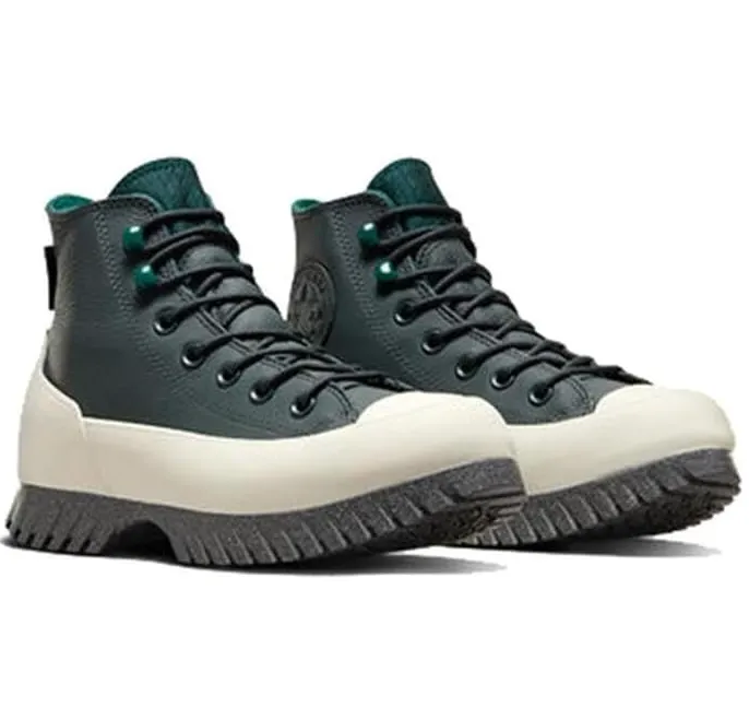 Converse – All Star | AUTHENTIC LEATHER High Platform Women’s Lugged 2.0 CC Green Leather Sneaker, Size 4.5 UK. Converse Chuck Taylor All Star Lugged 2.0 Counter Climate shoe, is made of waterproof leather. Designed in high cut, it features round lace-up closure, inner lining and OrthoLite insole offering comfort in every step. On the outer part incorporates rubber liners with gallon traction on the sole.