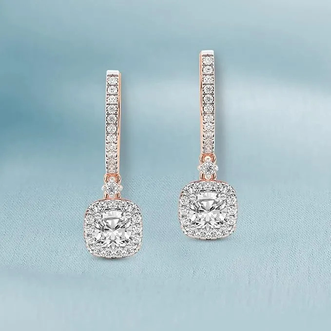 The beauty of Lyra Halo Lab Diamond Earrings by Friendly Diamonds, crafted with high-quality IGI Certified Lab Grown Diamonds (1 cttw – 6 cttw) and set in 14K or 18K White, Yellow, or Rose Gold, these earrings exude style and elegance. With FG-VS1-VS2 quality, they offer exceptional brilliance and sparkle.