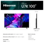 Buy this Hisense 100 Inches 144Hz 4K QLED Smart Gaming TV 100E7NQTUK PRO – Full Array Local Dimming, Dolby Vision Atmos, Freesync, Subwoofer, Vidaa OS with Freely, Youtube, Netflix and Disney+ (2024 Model) [Energy Class G]