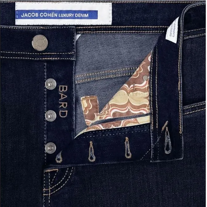 “Discover the epitome of luxury and style with Jacob Cohën’s meticulously crafted denim jeans. Made from premium blue cotton, these UNIQUELY designed pants exude sophistication and comfort. The attention to detail is unparalleled, from the expertly tailored fit to the signature five-pocket construction. Available in various sizes, these jeans seamlessly blend high-quality craftsmanship with timeless elegance.”
