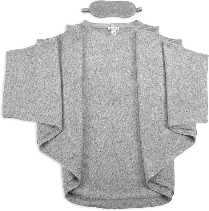 Jet&Bo 100% Cashmere Poncho & Sleeping Eye Mask Travel Kit in Gray: This luxurious set combines comfort and style for discerning travelers. Crafted from pure cashmere, the poncho serves as a cozy blanket during flights, ensuring warmth without slipping off. The matching eye mask adds a touch of indulgence, pampering your eyes during restful moments. Whether you’re jetting off or enjoying a staycation, this exclusive kit promises unparalleled comfort. Elevate your travel experience with Jet&Bo—where luxury meets practicality!