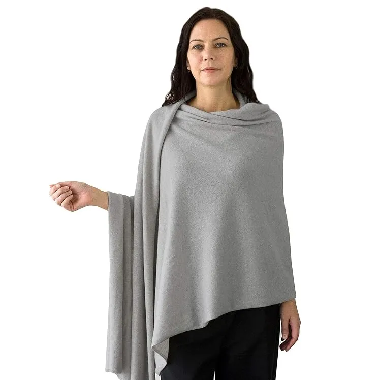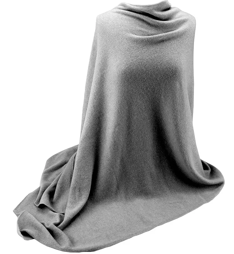 Jet&Bo 100% Pure Cashmere Travel Wrap, Scarf & Blanket in Gray! Made from luxurious cashmere, this generously sized wrap (80” x 30”) is incredibly soft and lightweight. Perfect for travel, it can be worn in various ways: as a wrap, oversized scarf, shawl, snood, or even a cozy travel blanket. The set includes a protective cotton storage bag and a stylish gift box. Whether you’re jet-setting or simply need an extra layer of warmth, this versatile accessory has you covered!