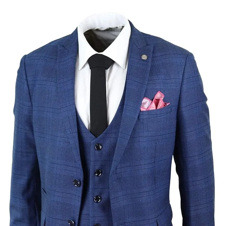 MARC DARCY – LUXURY Men’s 3 Piece Suit Blue ‘PRINCE OF WALES’ Black Check Vintage Retro