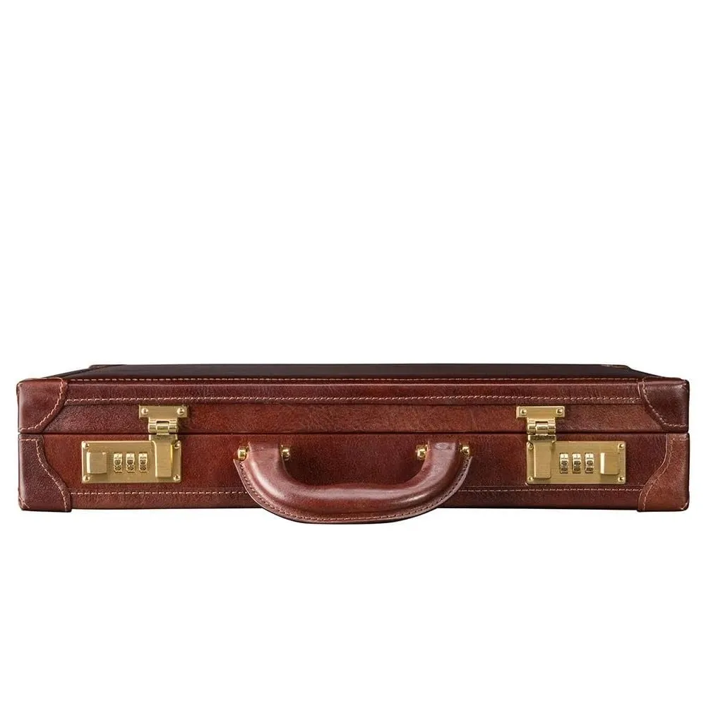 The Scanno is a true classic—an elegant, high-quality leather attaché case designed for the discerning gentleman with refined taste. Handmade in Italy by master leather craftsmen, it draws on the rich design heritage of Britain, featuring a classic attaché case design. The Scanno boasts twin combination locks that ensure your belongings remain secure. Inside, a smart cream, suede-lined interior reveals two large pockets and organizational slots for your smartphone, business cards, and pens. With ample space for a 15″ laptop or MacBook Pro, as well as A4 documents, this fine-quality leather slim attaché case marries functionality with impeccable craftsmanship. Crafted from the finest full-grain, vegetable-tanned leather, The Scanno is built to last throughout your career.