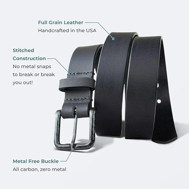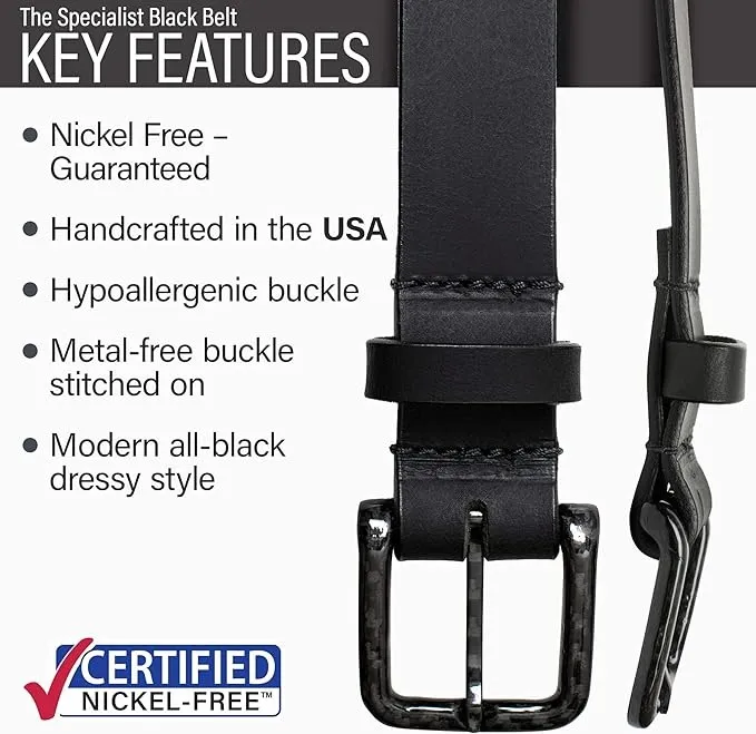 NICKEL SMART – Specialist Black Carbon Fiber Belt, Full Grain Leather, Certified NICKEL FREE, TSA Friendly, Non-Metal, USA made