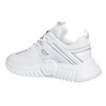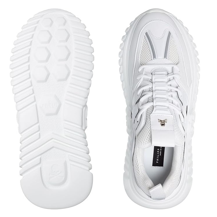 - Iconic Details: A skull patch detail on the sneakers adds an edgy touch, reflecting Philipp Plein’s rebellious spirit. The chunky rubber sole not only enhances comfort but also makes a bold fashion statement.
