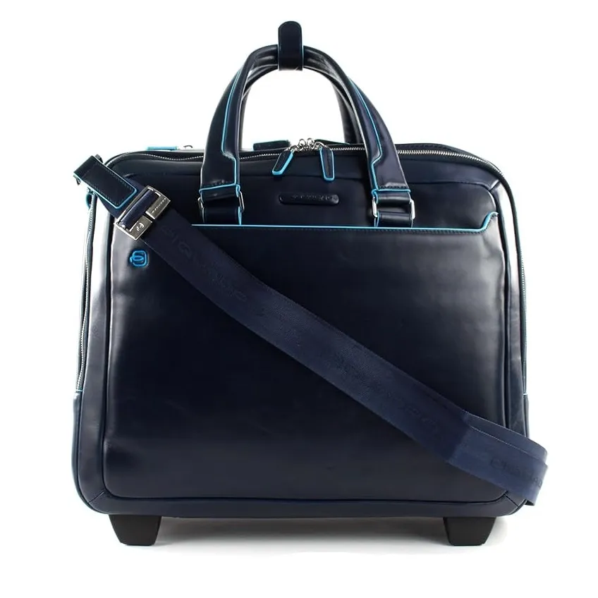 PIQUADRO Blue Square Wheeled Computer Briefcase Blu Notte:
