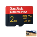 Introducing the SanDisk 2TB Extreme PRO microSD Card, the ultimate storage solution for smartphones, action cams, and drones. Enjoy blazing speeds up to 250 MB/s for seamless 5K and 4K UHD recording. This A2 App Performance card ensures top-tier speed and reliability. It includes an SD adapter and RescuePro Deluxe, making it a perfect choice for professional and demanding users seeking superior performance. Experience unparalleled storage excellence today.