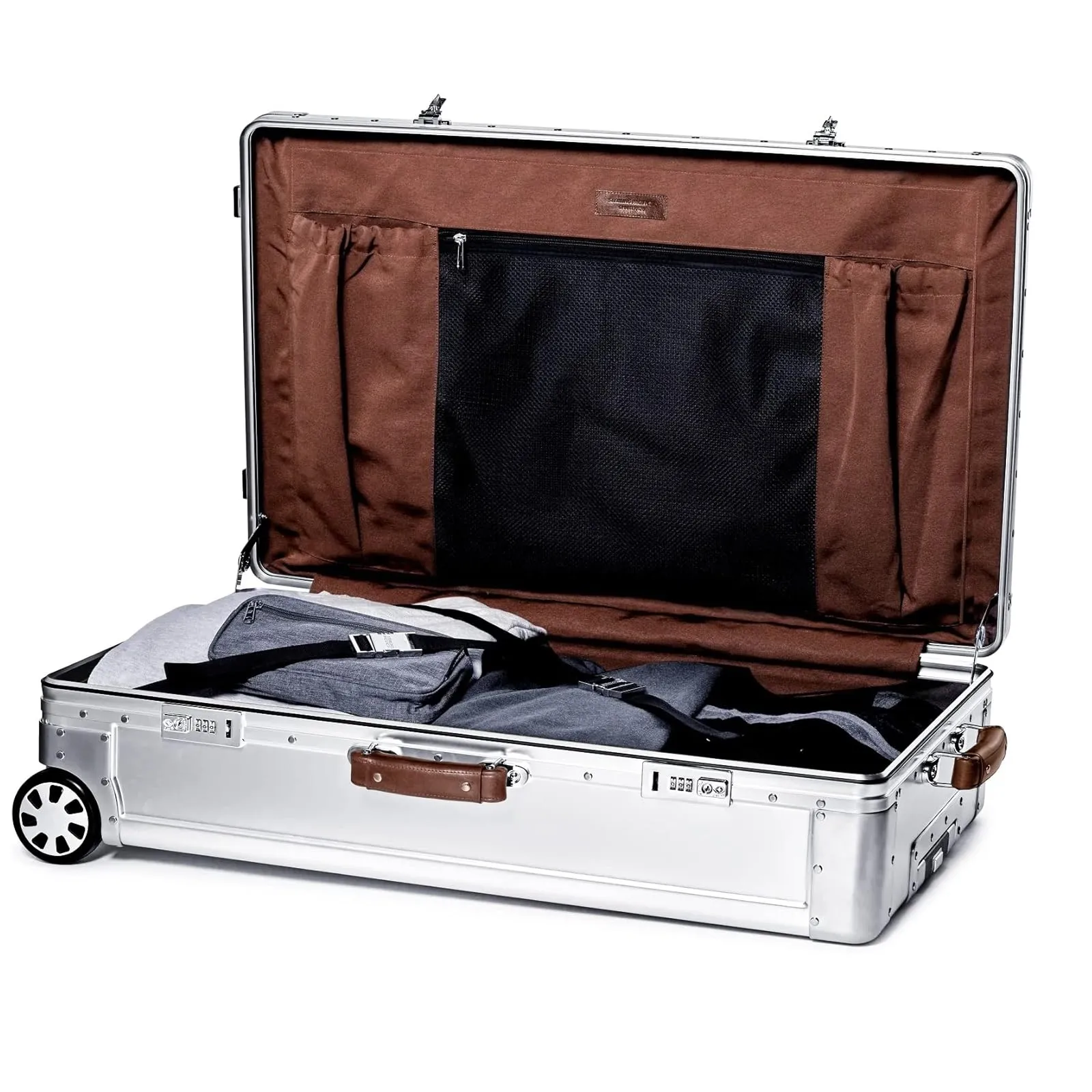 The epitome of luxury with Sterling Pacific’s PROTECTIVE Deluxe Aluminum Air-Travel Luggage. Crafted from solid aluminum, this 80L luggage ensures your belongings are protected throughout your journey. Featuring a TSA code lock, it offers enhanced security and peace of mind. Travel in style and confidence with this premium, durable luggage designed for the discerning traveler who values both elegance and protection.
