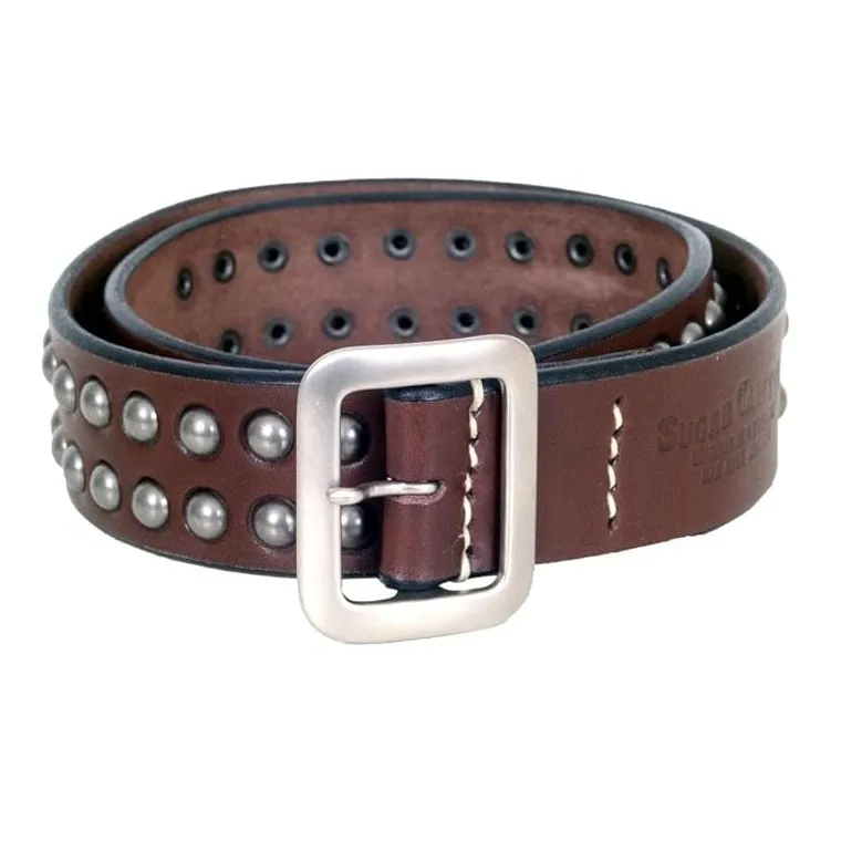SUGAR CANE – HIGH QUALITY Brown SC02322 Leather Garrison Belt with Studs, 38W, made in JAPAN