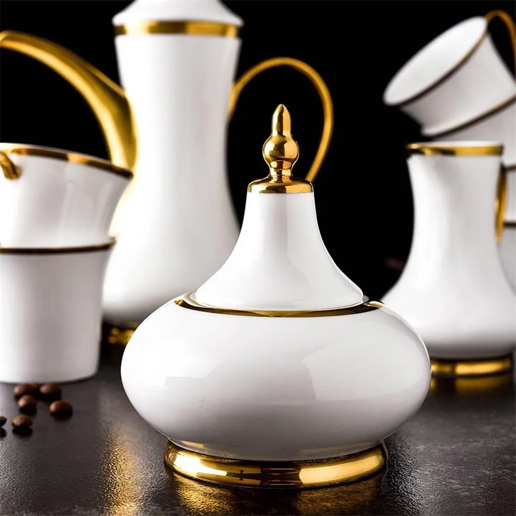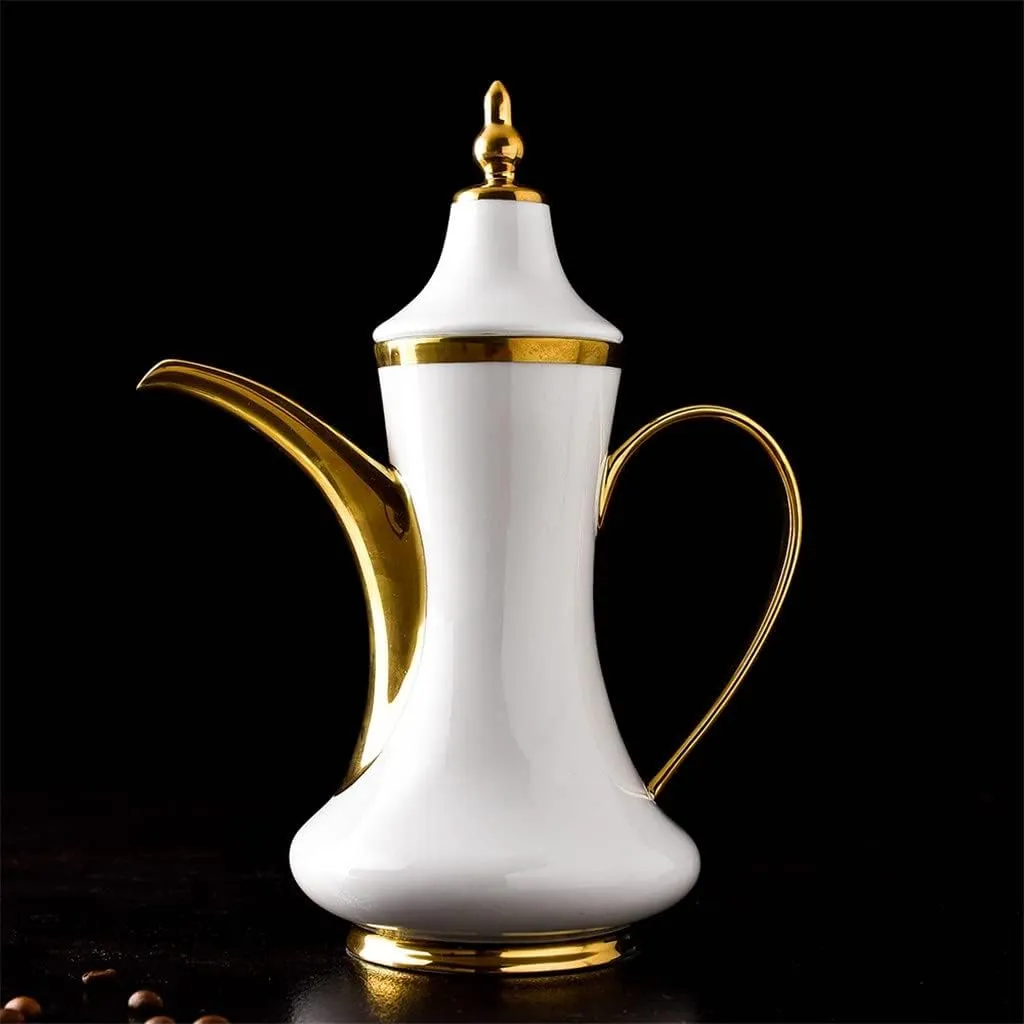 European Style Hand Drawn Gold Line Coffee Pot Coffee Cup Saucer Spoon Set Ceramic Mug Top-Grade Porcelain Tea Cup Set.