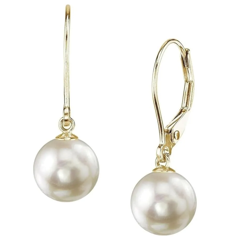 Present yourself with a High Class Luxury Genuine Round Pearl Earring by The Pearl Source. 14K Gold 7.5-8mm AAA Quality Round Genuine White Akoya Cultured Pearl Leverback Earrings for Women.
