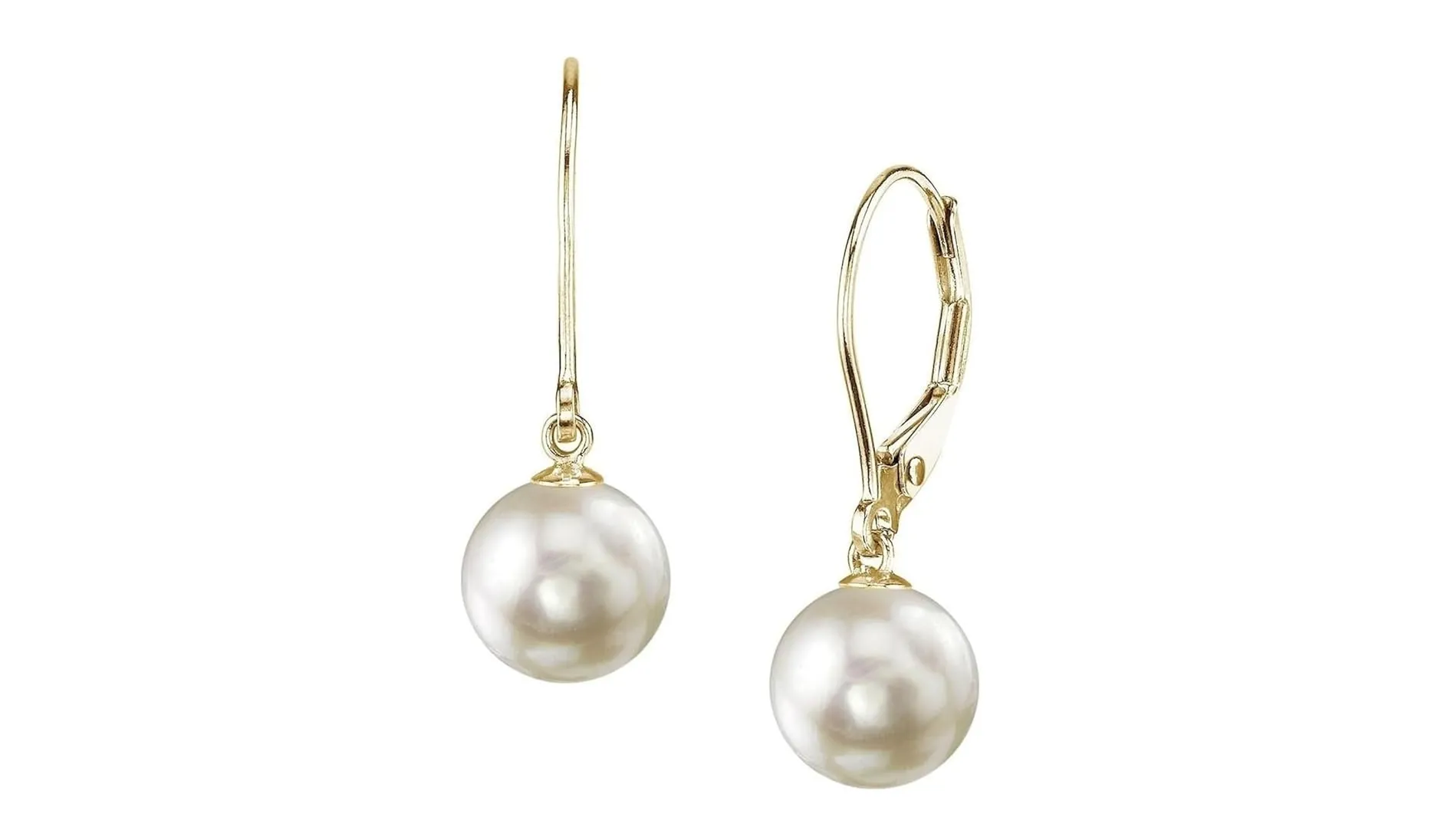 Present yourself with a High Class Luxury Genuine Round Pearl Earring by The Pearl Source. 14K Gold 7.5-8mm AAA Quality Round Genuine White Akoya Cultured Pearl Leverback Earrings for Women.