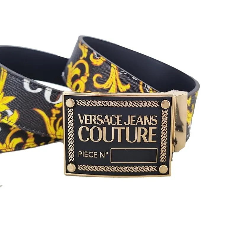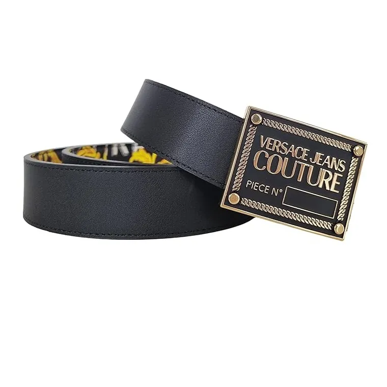 The luxury of the VERSACE Couture Belt (74YA6F01). This reversible leather belt in striking black and gold epitomizes the boldness and style synonymous with top brands. Crafted with meticulous attention to detail, it offers versatility and sophistication, making it a standout accessory for any occasion. Whether you’re dressing up for a formal event or adding a touch of elegance to your everyday look, this belt ensures you exude confidence and flair. Experience the unparalleled craftsmanship and timeless appeal of VERSACE with this exquisite piece.