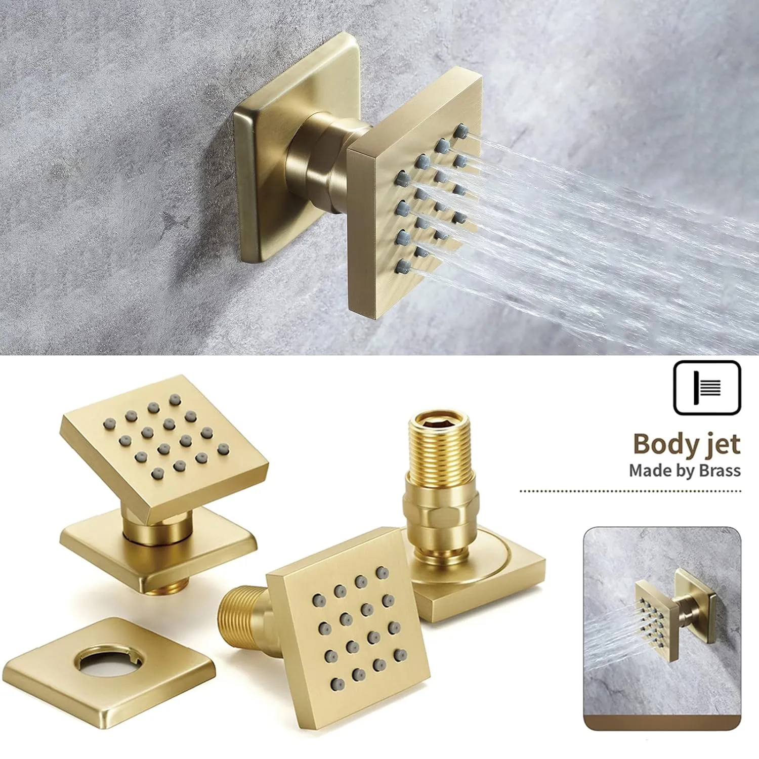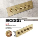 Shower Function Controller: Brass thermostatic shower valve.The valve is paired with the Rite-Temp pressure balance valve, which can maintain the required water temperature when the pressure fluctuates, and the safety temperature is locked at the controller at 38 degrees (100℉). All functions can be used at the same time. Rotate the button to change the water flow