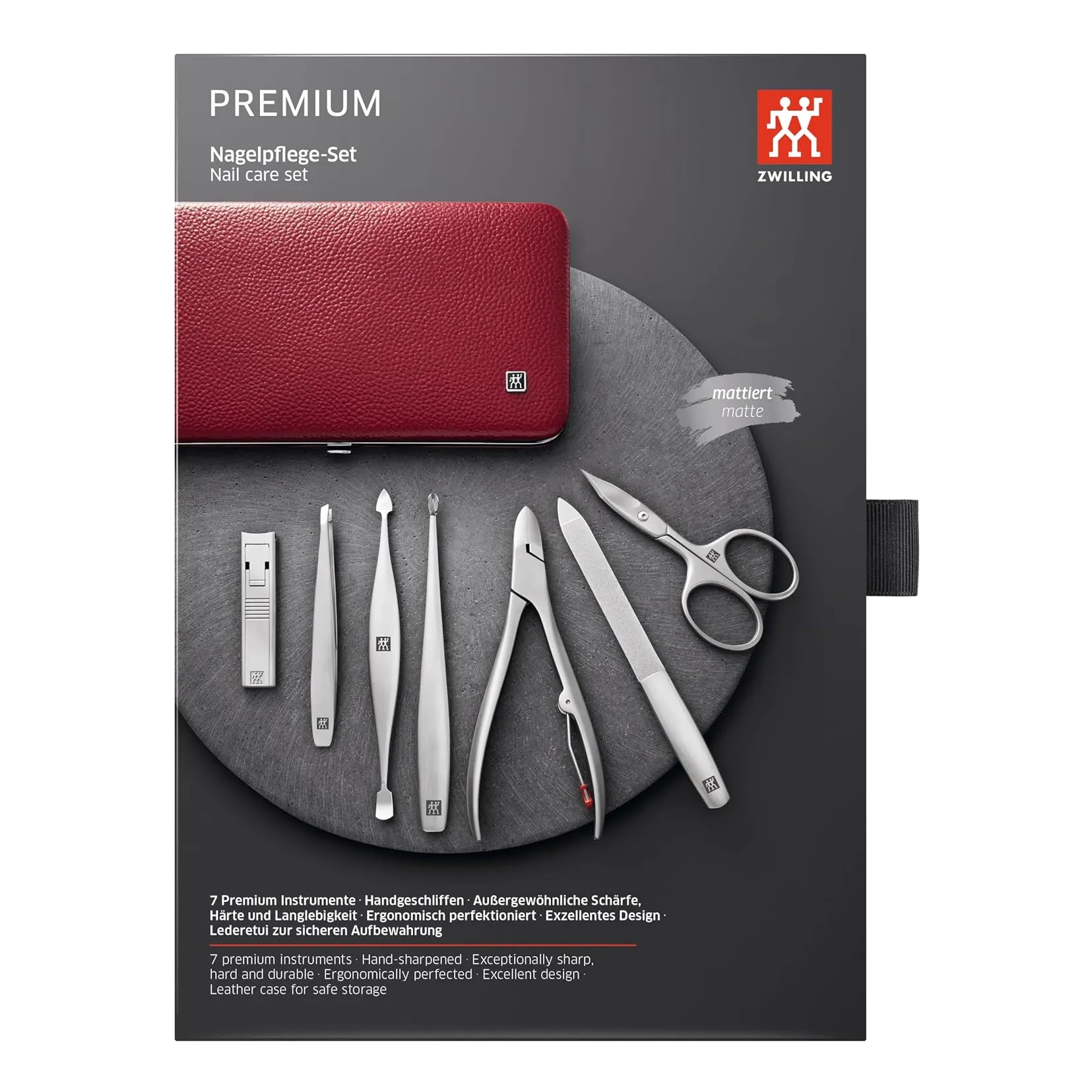 ZWILLING – LUXURY Henckels Twinox Manicure Set, Dauphine Red (7 Pieces), Premium, Leather